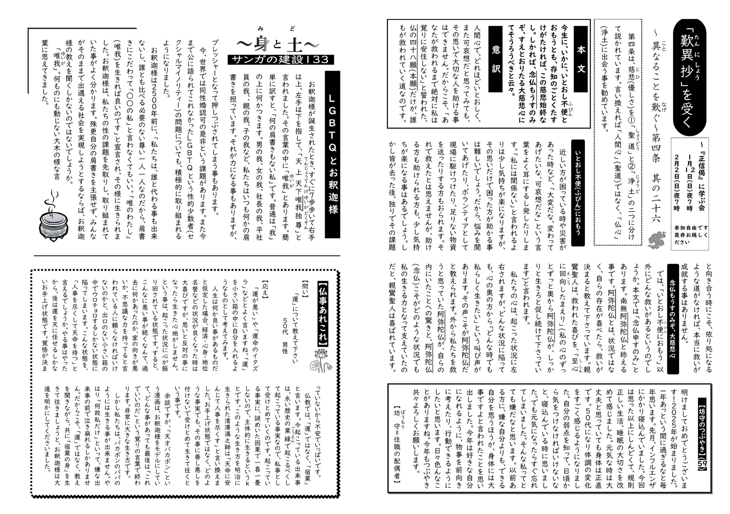 「あたりまえの事など一つも無いぞ」と仏さまは教えます。そして、今、実感出来なくてもいいから、常に「有難う」と口に出しておいてほしいと願われています。
