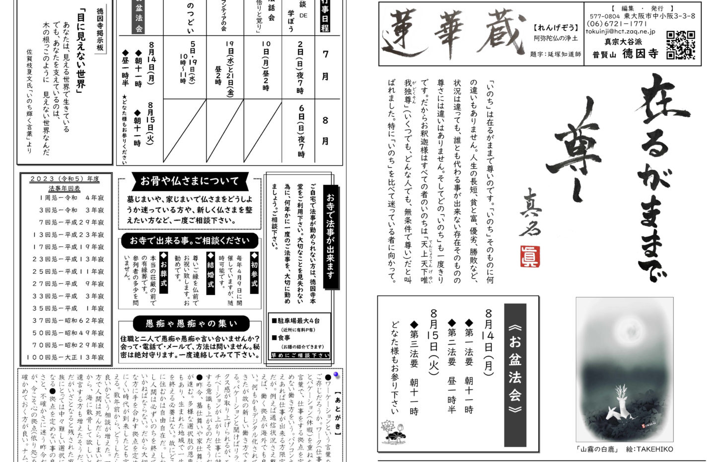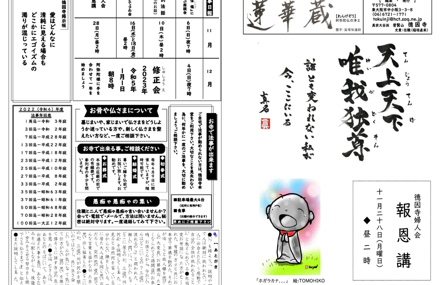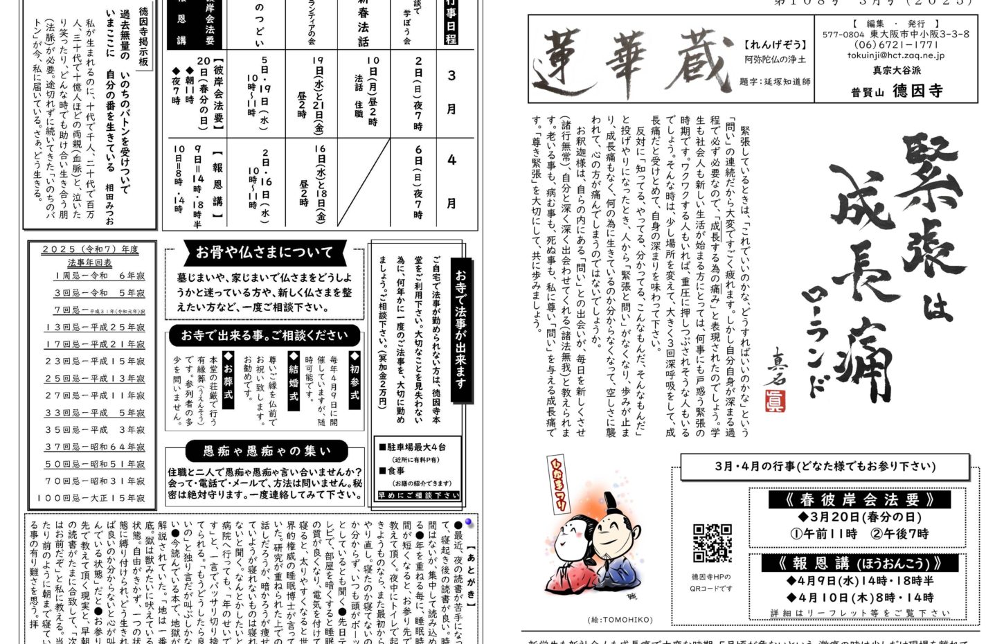 蓮華蔵【れんげぞう】 第110号 5月号(2025年) 2025.5.1 蓮華蔵 朝ドラ「あんぱん」のセリフより内容は「アンパンマン」を生み出した、やなせたかしと暢の夫婦がモデルで、生きる意味を失っていた苦悩の日々と、それでも夢を忘れなかった二人の人生物語。右記の言葉は、「アンパンマン」の主題歌の歌詞にも反映されている。 各記事のリンク集 歎異抄を受く 坊守のつぶやき 身と土 仏事あれこれ あとがき あとがき(2025年5月) 異なることを歎ぐ 第五条 其の三十一 関連記事 第72号 3月号(2022年) 第82号 1月号(2023年) 第80号 11月号(2022年) 第108号 3月号(2025年) 第70号 1月号(2022年) 第88号 7月号(2023年)