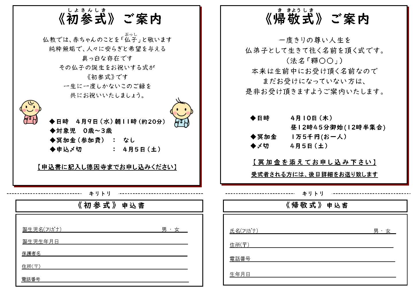 誕生会と帰敬式案内(申込書) 2025.03.12 申込書ダウンロード 報恩講リーフレット 永代経法要のご案内 新着記事 お知らせ一覧 2025.07.27 第17回子ども夏のつどいチラシ 2025.05.27 永代経法要のご案内 2025.03.12 報恩講リーフレット 2024.07.23 第16回 子ども 夏の集いのお知らせ